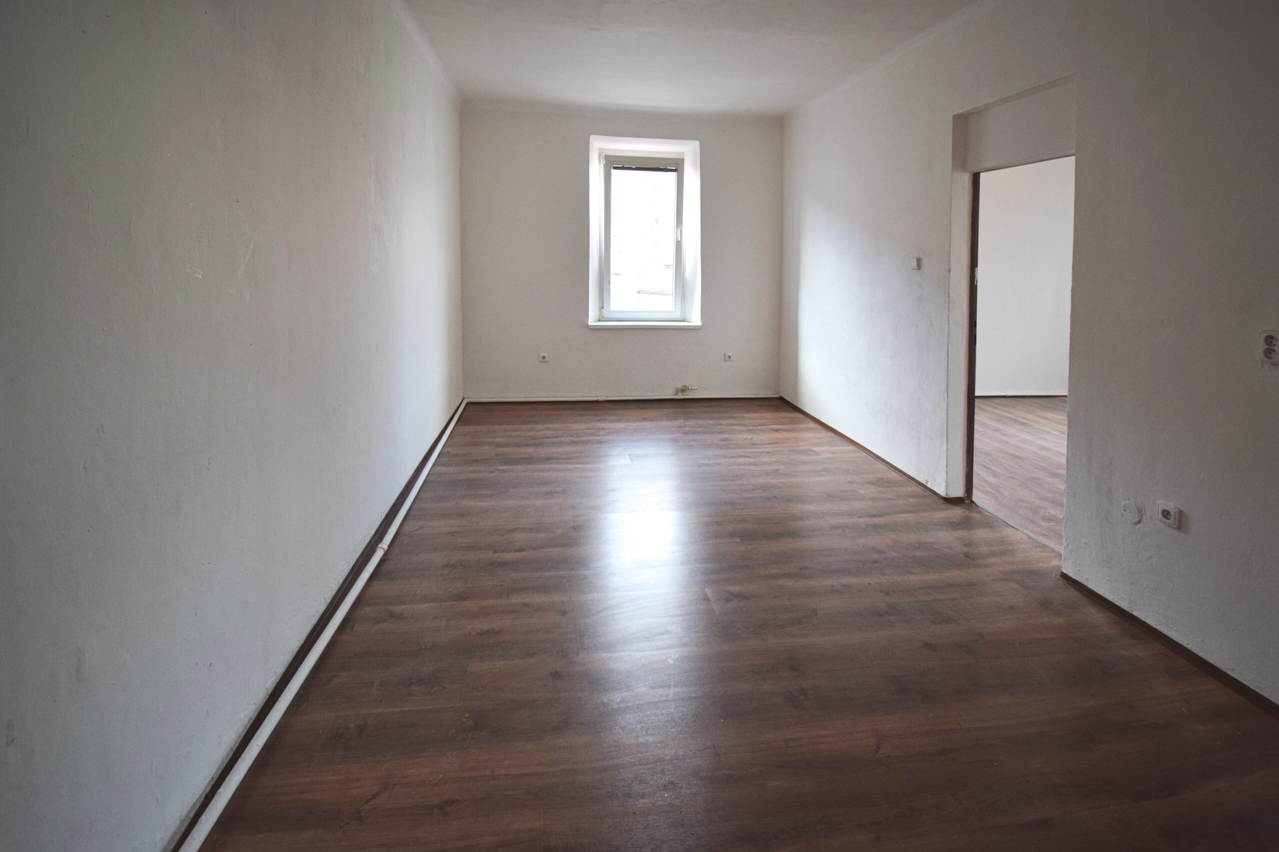 Byt disponuje předsíní, 2 pokoji, kuchyní, samostatným wc a koupelnou. V koupelně je vana. Byt se nabízí bez vybavení.